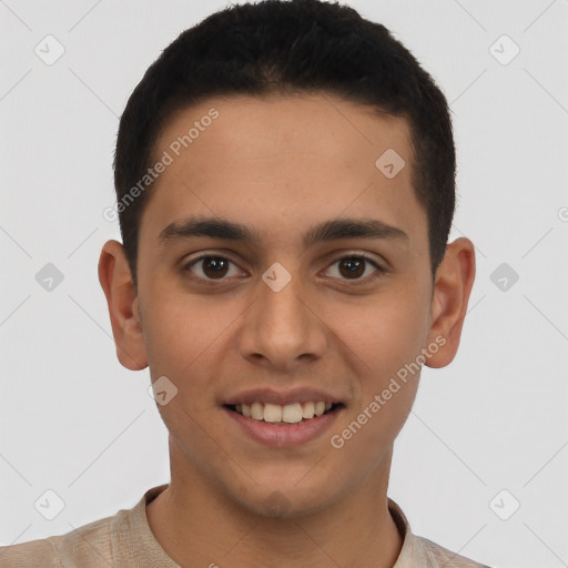 Neutral latino young-adult male with short  brown hair and brown eyes