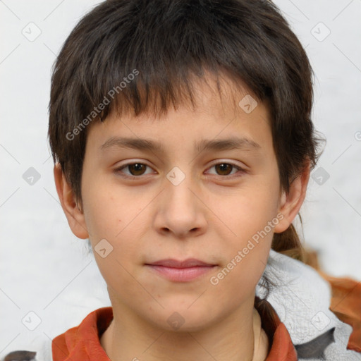 Joyful white young-adult female with medium  brown hair and brown eyes
